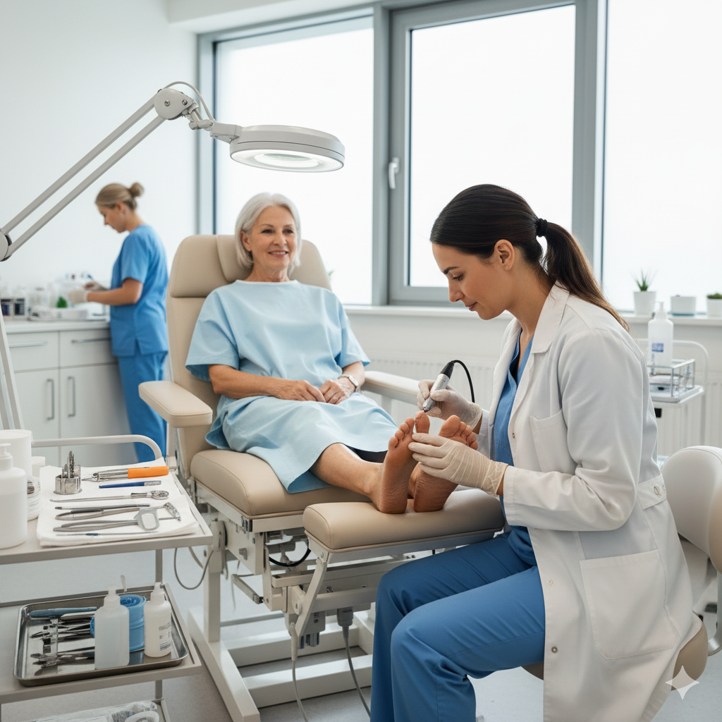 - Güvenli Tırnak Bakımı: Diyabetiklerde özel frezelerle kalınlaşmış tırnakların inceltilmesi.