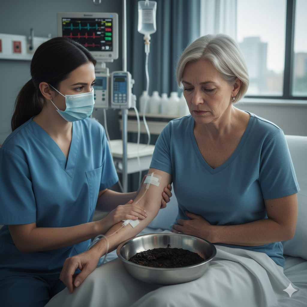 ÖNEMLİ UYARI: Melena acil tıbbi müdahale gerektirir. Siyah dışkılama fark edildiğinde en geç 24 saat içinde gastroenteroloji uzmanına başvurulmalıdır. Kanama durdurulamazsa cerrahi (laparotomi) gerekebilir.
