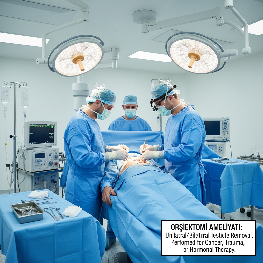 - Radikal Orşiektomi Tekniği: Kasıkta 5-7 cm’lik kesi → Spermatik kordonun klemplenmesi → Testisin çıkarılması → Kesi kapatılması (işlem süresi: 45-60 dakika).