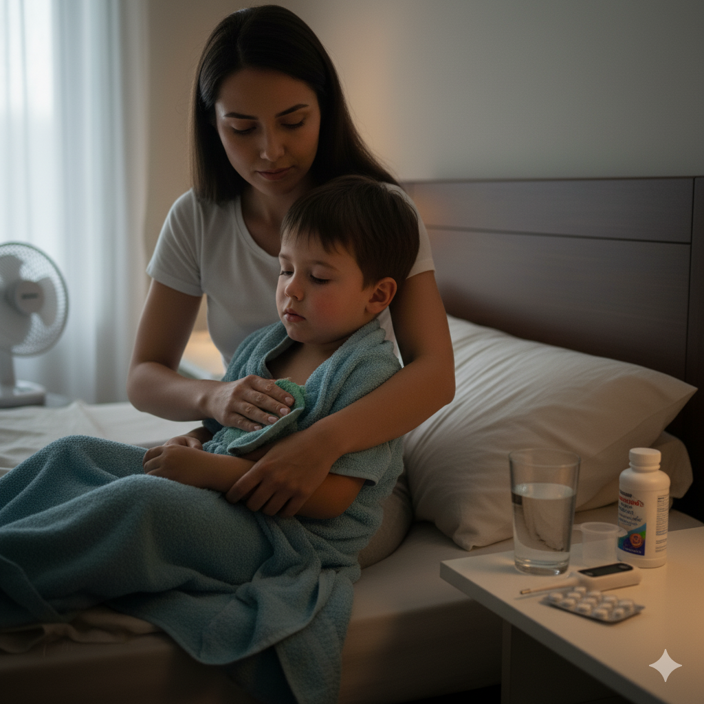 - Uygun Kıyafet Seçimi: Çocuğun ince ve pamuklu giysiler giymesi sağlanmalıdır. Kalın battaniyeler vücut ısısını artırarak ateşi yükseltebilir.